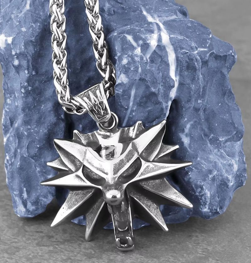 Ocelový zaklínačský medailon Zaklínač (The Witcher), který nosil Geralt z Rivie. Přívěsek je ve tvaru hlavy vlka. Jelikož je vyroben z oceli, můžete ho nosit do vody, na sport a kamkoliv jinam, kam půjdete!