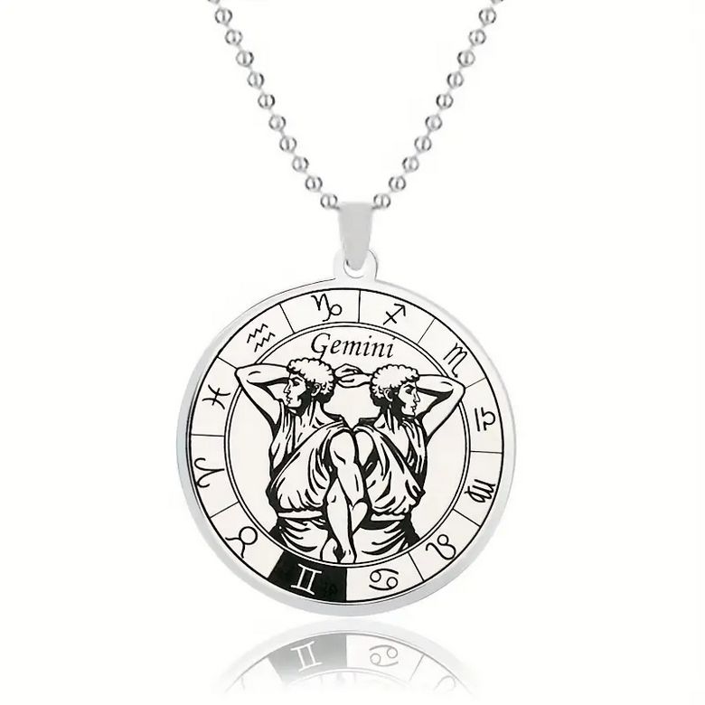 Ocelový náhrdelník a přívěsek se znamením zvěrokruhu - blíženci (gemini). Super dárek pro všechny lidi narozené ve znamení blíženců.