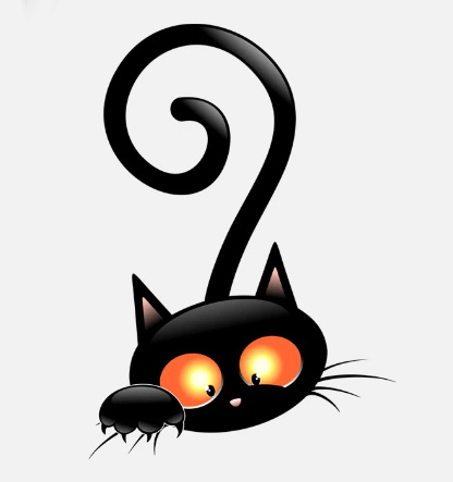 Samolepka s hlavou černé kočky, co má vytasené drápky a škrábe. Samolepka kočka může být nalepená na notebooku/autě, či jiném místě.