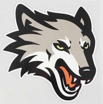 Samolepka s hlavou vlka, co má žluté oči a otevřenou tlamu. Nálepka vlk je vhodná na nalepení na notebook / počítač / auto či jinam.
