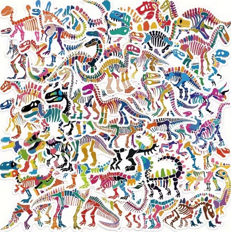 Sada 50 samolepek s různobarevnými dinosaury. Samolepky dinosauři jsou vhodné na nalepení třeba do bločku.