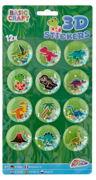 Sada 12 kusů 3D samolepek s dinosaury se třpytkami, který se při hýbání samolepkou také pohybují. Potěší každého milovníka dinosaurů. Vhodné pro kluky i holky.