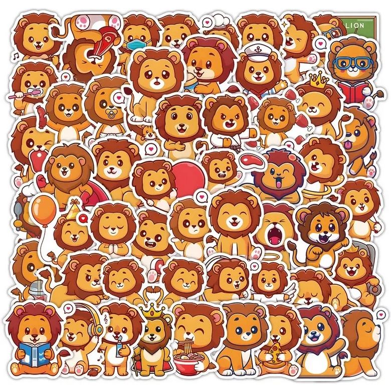 Samolepky s majestátným králem zvířat - se lvem. Set samolepek lev obsahuje 50 samolepek strašně roztomilých lvíčků. Vhodné pro všechny milovníky exotických zvířat, nebo lidi narozené ve znamení lva.