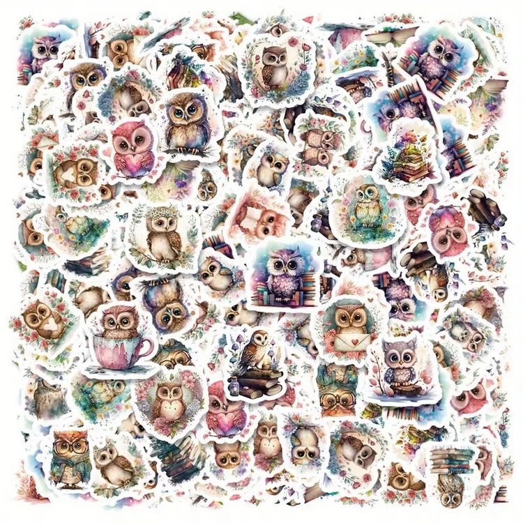 Set 46 samolepek se sovou. Samolepky sova obsahují různé barevné sovičky s květinami a knihami. Můžete si je nalepit do bločku, na notebook nebo třeba na nábytek.
