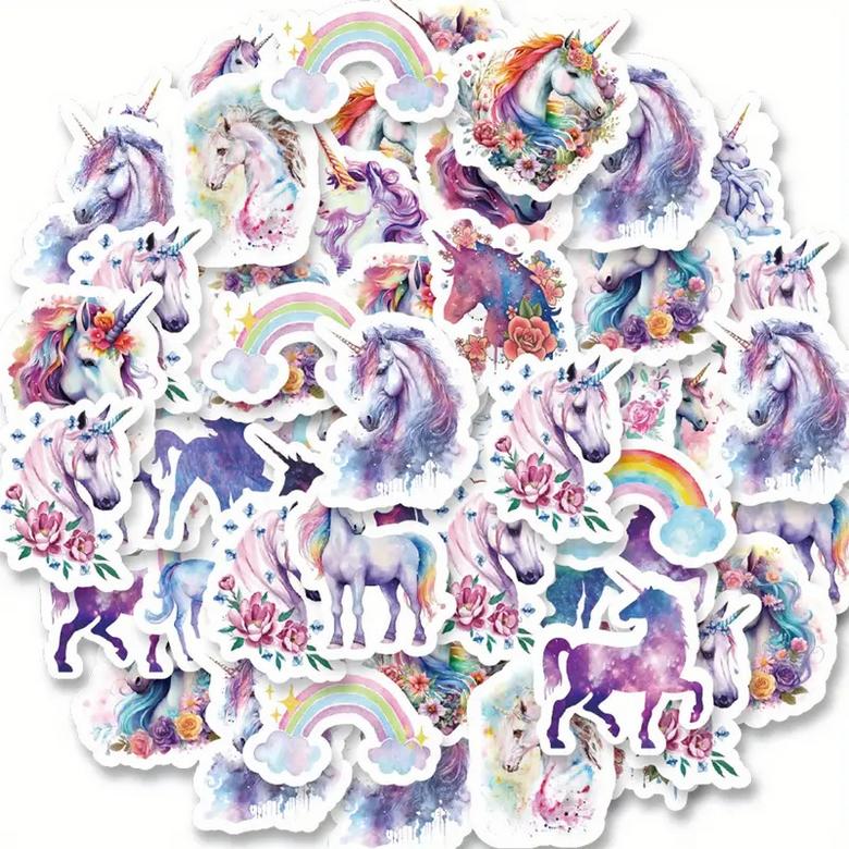 Roztomilá sada 46 samolepek s jednorožcem. Samolepky jednorožec a duha jsou barevné a veselé. Vidíme zde jednorožce s nádhernými rohy a barevnými hřívami. Vhodné pro nalepení třeba do bločku, na nábytek apod.