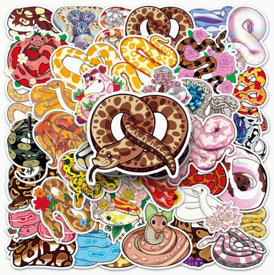 Balení obsahuje 50 samolepek s hadem. Nálepky had obsahují několik různobarevných plazů. Vhodné i pro lidi, kteří se hadů bojí, protože tihle hadi ti neublíží, působí spíše roztomile.