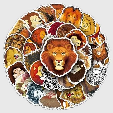 Samolepky s majestátným králem zvířat - se lvem. Set samolepek lev obsahuje 50 samolepek různých lvů - převážně hlav lva. Vhodné pro všechny milovníky exotických zvířat, nebo lidi narozené ve znamení lva.