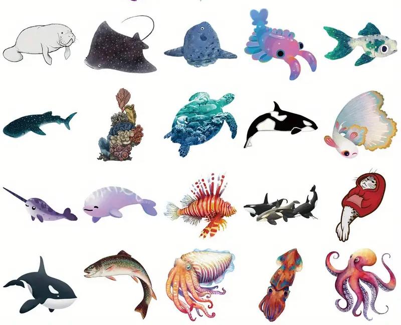 Set 50 barevných samolepek podmořský svět. Každá samolepka zvířátek z mořského světa je jiná.