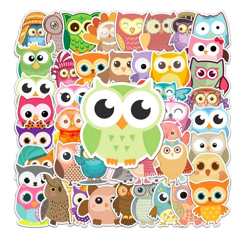 Set 50 samolepek se sovou. Samolepky sova obsahují různé barevné sovičky Můžete si je nalepit do bločku, na notebook nebo třeba na nábytek.