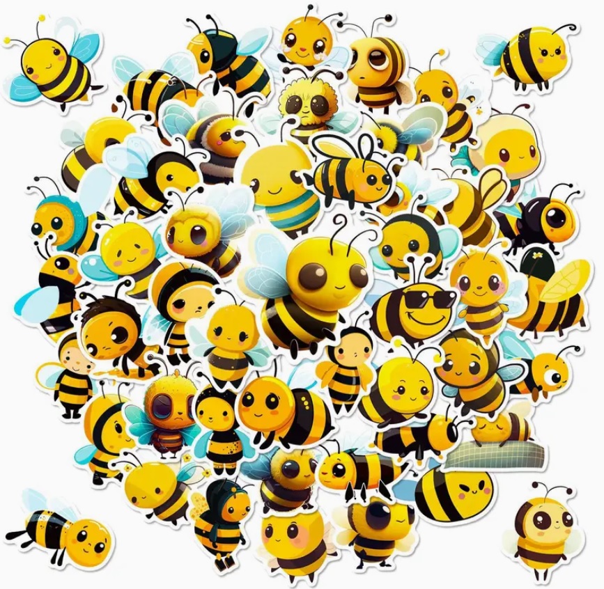 Samolepky včela - včelička. Samolepky se včeličkou jsou úsměvné, vtipné a originální. Můžete si je nalepit na telefon, notebook, do deníčku, či kamkoliv jinam.