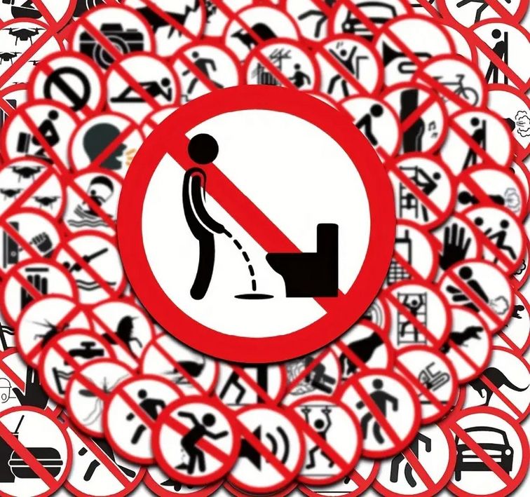 Sada 50 ks samolepek se zákazovými značkami - zákaz zvonění, aut, dinosaurů, klokanů, pití alkoholu, hlasitého mluvení aj.