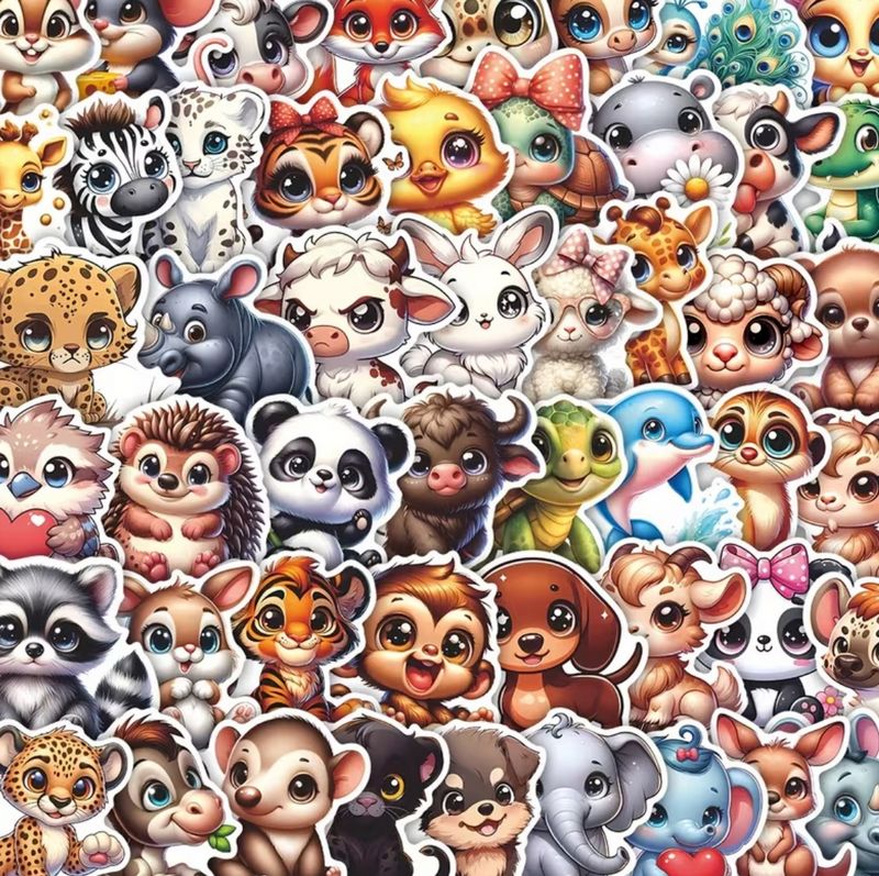 Samolepky zvířátka. Samolepky s krásnými zvířaty jako např. ježek, nosorožec, zebra, krokodýl, želva aj. Sada obsahuje 50 samolepek zvířata. Můžete si je nalepit do bločku, na notebook, na mobil či jinam.