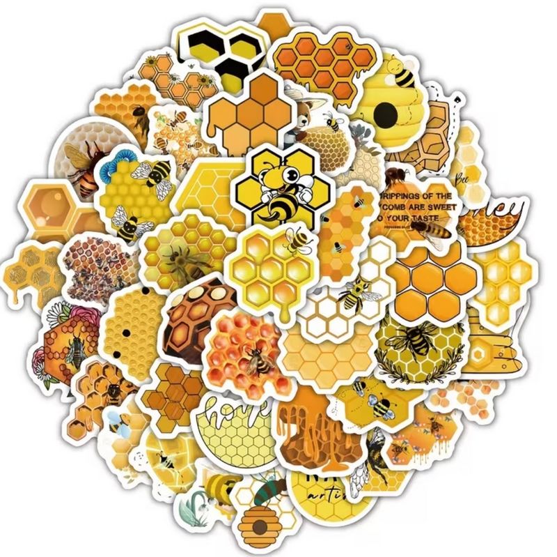 Samolepky včela - včelička a med. Můžete si je nalepit na telefon, notebook, do deníčku, či kamkoliv jinam.