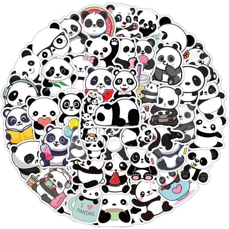 Samolepky s roztomilou pandičkou. Set samolepek panda obsahuje 62 samolepek pandy v různých pozicích a s různými výrazy - panda s melounem, panda v koblize, panda s knížkou, pand v hrníčku aj.