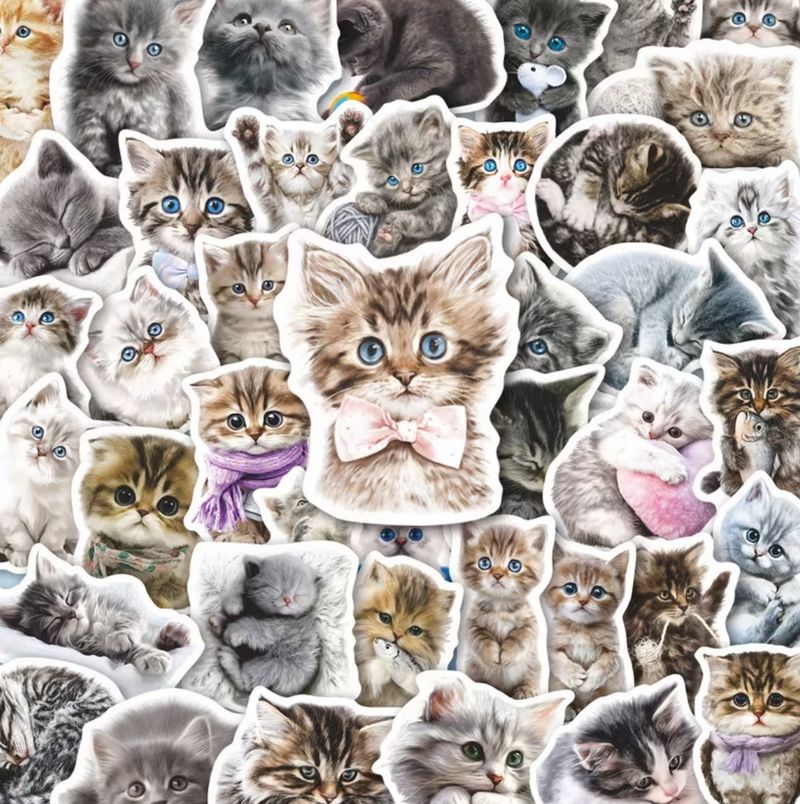 Samolepky s roztomilou kočkou - koťátkem. Sada samolepek kočka obsahuje 64 samolepek různých kočiček. Super dárek pro každého milovníka koček.
