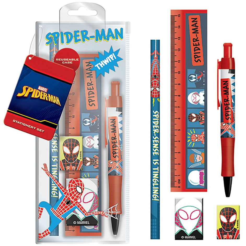 Oficiálně licencovaný set psacích potřeb s komiksovým hrdinou jménem Spiderman. Psací potřeby obsahují: gumu, ořezávátko, tužku, propisku a pravítko.